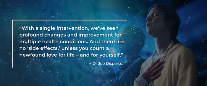 "Wie wir festgestellt haben, konnten mit einer einzigen Intervention tiefgreifende Veränderungen und Verbesserungen bei einer Vielzahl von gesundheitlichen Problemen bewirkt werden. Und das ohne „Nebenwirkungen“, höchstens vielleicht einer neu entdeckten Liebe zum Leben – und zu dir selbst." - Dr Joe Dispenza